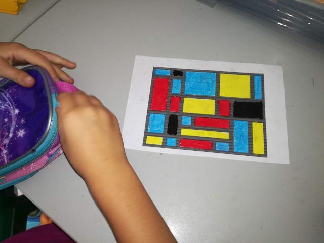 Depois cobre-se (pinta-se) com guache preto por cima das cores do lápis de cera e deixa-se a secar.